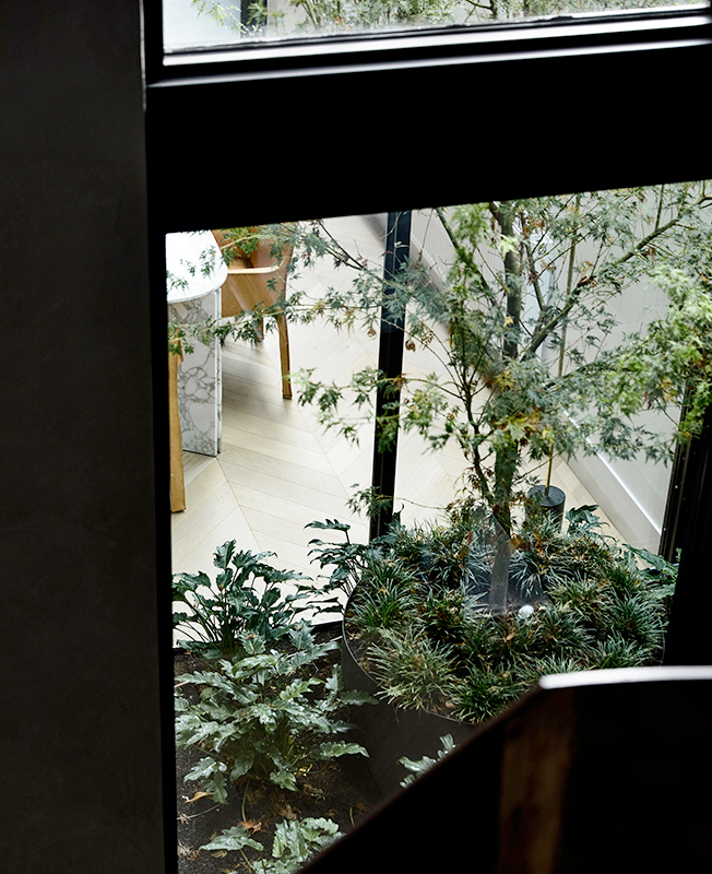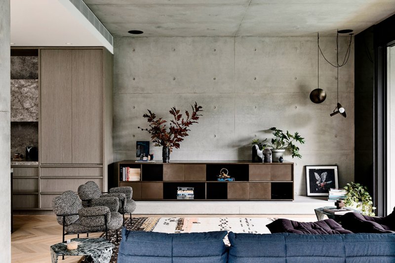 Материалы выбирали такие, которые «приглашают прикоснуться и почувствовать»: это деревянные панели на стенах, термически не обработанная сталь, бетон, натуральный камень, бронза.