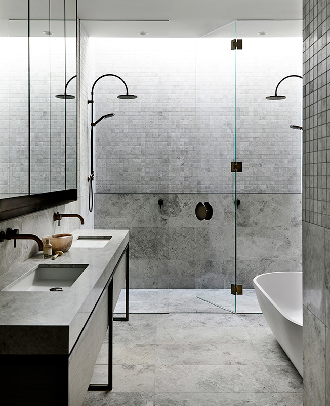 Huntingtower — проект студии Workroom в Армадейле, пригороде Мельбурна. Дом стоимостью несколько миллионов долларов — новая резиденция основателя Agushi Construction, Беара Агуши, и его семьи. Строгий и закрытый со стороны улицы, трехэтажный дом открывается зрителю со стороны внутреннего двора. Панорамные окна соединяют внутреннее и внешнее пространство, консольная конструкция второго этажа, выступающая за периметр основания, укрывает от дождя небольшую террасу. Дом окружает сад, разработанный известным ландшафтным архитектором Джеком Мерло, есть бассейн и открытая кухня. «Наш подход был очень продуманным и вне рамок моды. Связь между самим зданием и его обитателем основана на строгом исследовании масштаба, формы, пространства и материала. Тонкая палитра материалов и сложные детали создают ощущение элегантности и роскоши», — говорит директор студии Workroom, архитектор Джон Борнас. Дом на четыре спальни, каждая из которых со своей ванной комнатой, располагает помещениями для общения, отдыха и приема гостей: просторной гостиной, лаундж-зоной и столовой, профессионально оборудованной кухней и буфетной. Этажи соединяет эффектная лестница, очертания которой меняются в зависимости от угла зрения. Материалы выбирали такие, которые «приглашают прикоснуться и почувствовать»: это деревянные панели на стенах, термически не обработанная сталь, бетон, натуральный камень, бронза. «Каждый элемент выбран для того, чтобы дополнять другие или контрастировать с ними. И к выбору каждого подошли одинаково строго, вплоть до мельчайших деталей. Это дает дому ощущение последовательности, которая добавляет интерьеру глубины. Стилист Симона Хааг помогла дому полностью реализовать его потенциал с помощью подходящей мебели и аксессуаров», — говорит Джон Борнас.