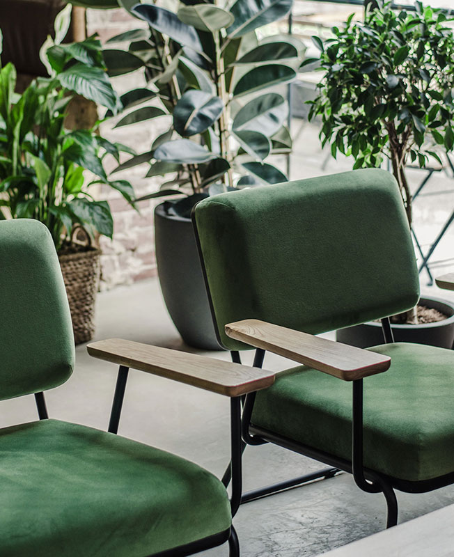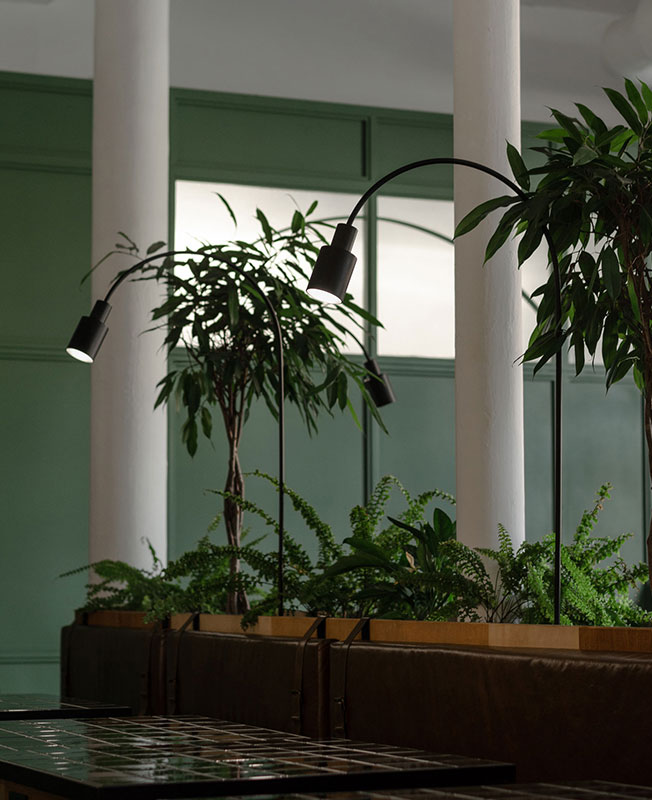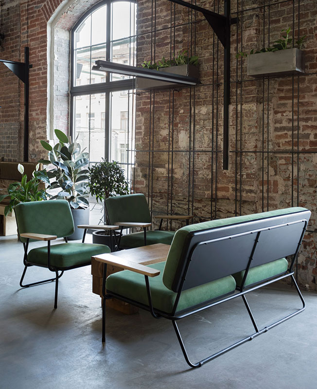 В интерьере также был сделан акцент на присутствии природы: по всему помещению расставили множество растений, а также использовали элементы, которые чаще применяются на открытом воздухе, в садах — скамейки, уличную мебель и др.