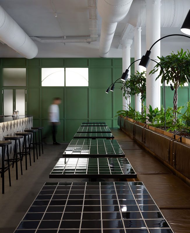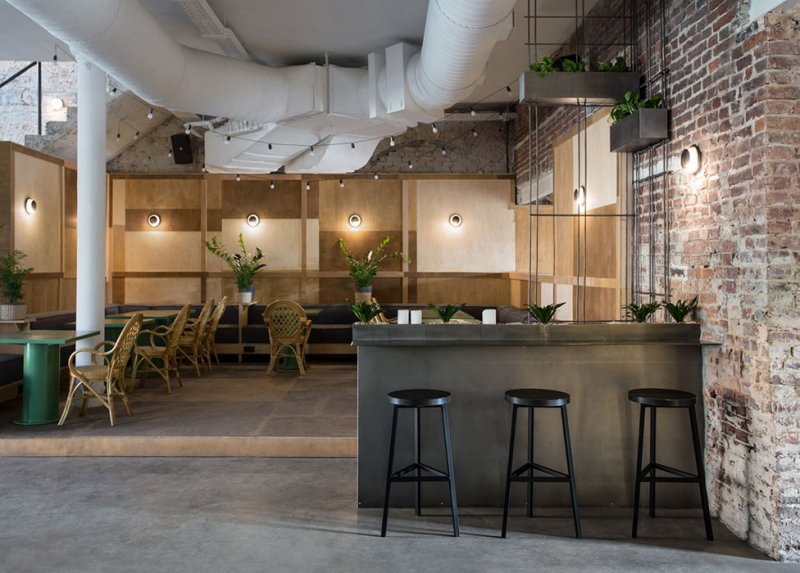 Архитекторы balbek bureau оформили в центре Львова молодежный паб MolodoZeleno. Трехэтажное заведение названо в честь игры слов украинского языка на тему юности и веселья. Бывшее промышленное здание превратилось в жизнерадостный интерьер, в котором можно с удовольствием провести целый день, не ощущая типичную атмосферу питейного заведения. «Нашей главной задачей было создать оригинальное пространство, которое было бы связано скорее с Октоберфестом, нежели рестораном», — рассказывают Слава Балбек и Женя Дубровская. Масштабная барная стойка объединила залы в цельное пространство и заодно спрятала необходимое оборудование, посуду и прочее. Архитекторы решили визуально связать внешнюю и внутреннюю часть заведения. Исторические архитектурные элементы были сохранены и гармонично интегрированы в пространство. Оригинальный тротуар во дворе стал основой для открытой террасы, красная кирпичная кладка подчеркнула связь интерьера и экстерьера, а также стала выразительным фоном для предметов мебели. В интерьере также был сделан акцент на присутствии природы: по всему помещению расставили множество растений, а также использовали элементы, которые чаще применяются на открытом воздухе, в садах — скамейки, уличную мебель и др. Всплески зеленого цвета в светильниках, стенах и архитектурных элементах также апеллируют к юности, молодой траве и ссылаются на название этого уютного гостеприимного заведения. nonehttps://www.instagram.com/balbekbureau/https://www.facebook.com/balbekhttps://www.2bua.com/