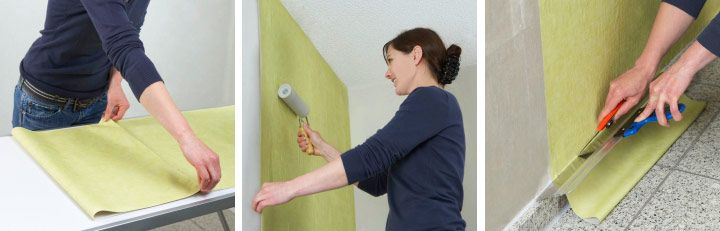 При оклеивании поверхности, в начале на стены наносится клей, а затем прикладываются и разглаживаются обои, данная техника очень удобна. При замене они снимаются со стен достаточно просто.