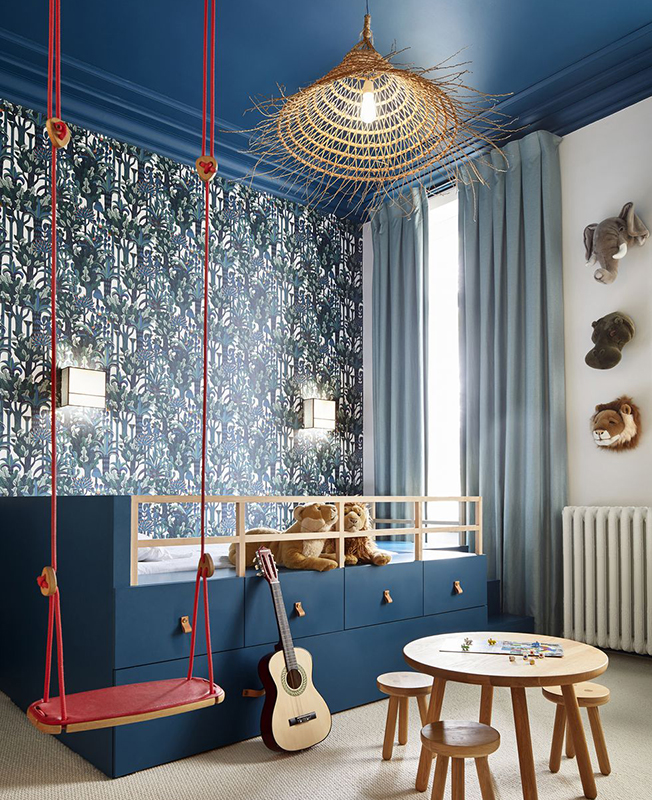Именно фирменный Bleu Sarah в комбинации с нежным розовым и графичным черным контуром делает ее работы столь кинематографичными и привлекательными. Любимый Le Bleu Sarah можно заметить в доме повсюду — в спальнях, гостиной, в детских, на стенах, обивках и на коврах.