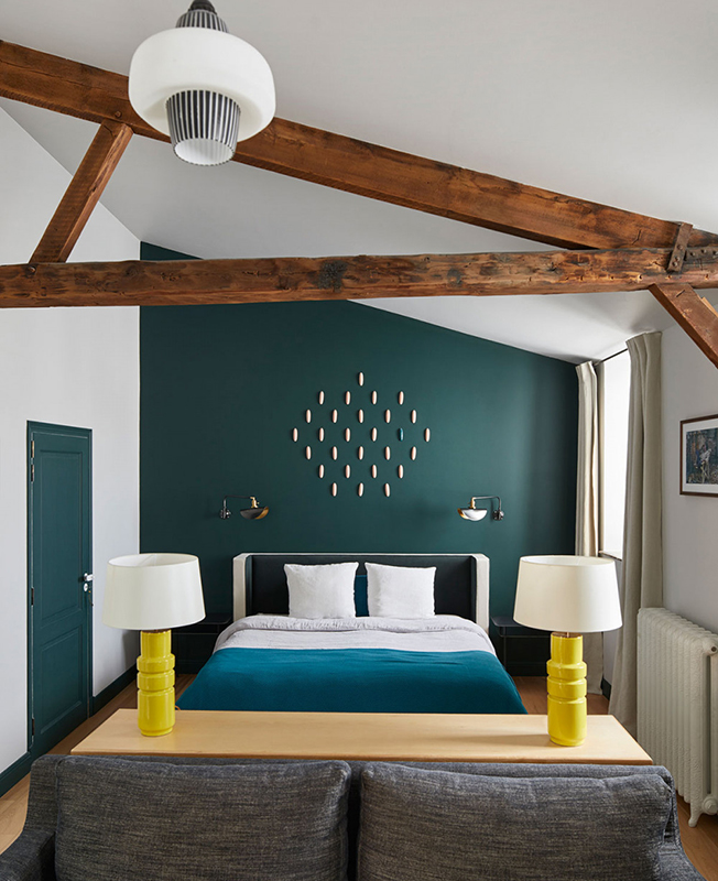 Красочные и вместе с тем элегантные интерьеры Сары Лавуан всегда отличает богатая гамма. Секрет Лавуан — собственная палитра. Ее она разработала для бренда дизайнерских красок Ressource. Из 36 цветов особенно популярным оказался Le Bleu Sarah. Зеленовато-синий оттенок по-разному смотрится в зависимости от освещения. Сара характеризует его как «живой, свежий и успокаивающий одновременно».