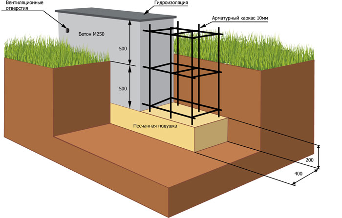 Такую основу начинают формировать на тщательно утрамбованном песке и щебне. Строители конструируют деревянную опалубку, между стен которой заливается бетон. Полость между фундаментом и котлованом заполняют землей и утрамбовывают. Также в конструкцию добавляют армированный каркас для прочности.