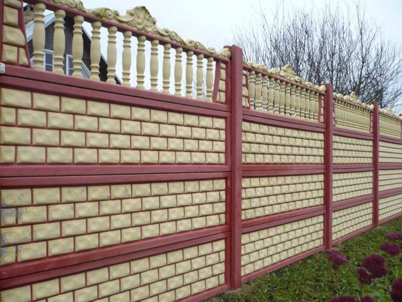 При выборе формы для заливки следует учитывать их некоторые тонкости. К формам из ударопрочной технической термопластической смолы бетонный раствор не прилипает, поэтому они не нуждаются в обработке распалубочной смазкой. При необходимости подвергаются реставрации. Формы из ПВХ пластика отлично передают рельеф, но для их применения потребуется вибрационный стол. Плиты из низкоуглеродистой стальной проволоки требуют создания предварительного каркаса, изготавливаемого в виде сетки, которая потом заливается раствором. Размер сеточного каркасного звена 0,1 на 0,1м. Плиты устанавливаются между столбов друг на друга. Сам декоративный забор может быть глухим или ажурным. Данный вариант ограждения, как и большинство других, требует установки фундамента.