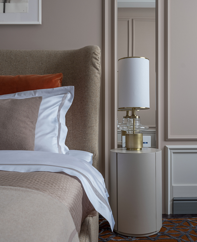 Фрагмент спальни. Светильник и зеркало, Ginger & Jagger, Booroom Gallery. Стол Ion и кресло Aura, Giorgetti, «Флэт-интерьеры».