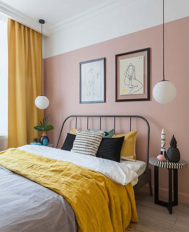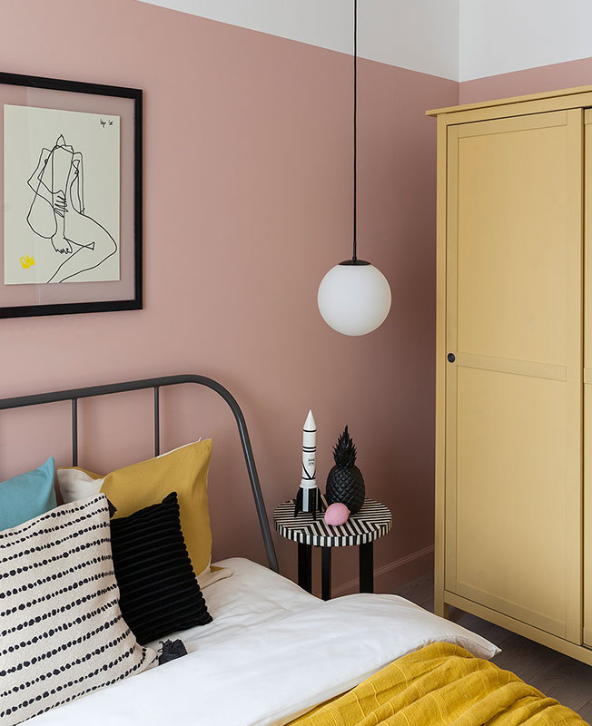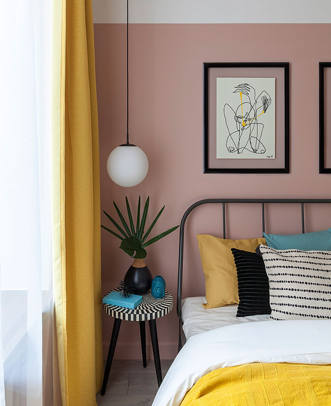 Фрагмент гостиной. Стол, Ikea, столешница была заменена. Стулья, La Redoute. Светильник, Family Hall. Будучи студенткой Британской высшей школы дизайна Света Хабеева в рамках курсовой работы оформила квартиру 50 кв. метров специально для сдачи в аренду. Кухня. Гарнитур выполнен на заказ по эскизам дизайнера. Ручки, Ikea. Аксессуары, Designboom. Компактное жилье расположено на Кутузовском проспекте с видом на Триумфальные ворота. Квартиру покупали целенаправленно под краткосрочную аренду на Airbnb, а интерьер создавался для иностранных туристов и других гостей столицы. nonehttps://www.instagram.com/khabeeva/https://www.facebook.com/skhabeevahttps://www.svetakhabeeva.com/ Дизайнер впервые попала на объект еще на этапе покупки: «Когда я зашла в квартиру, было жутковато. Помещения были очень темные, на окнах висели бордовые тяжелые шторы, везде были шкафы с антресолями и ковры на стенах. Но я сразу придумала перепланировку под наши цели и квартиру купили», — рассказывает Света. Фрагмент гостиной. Диван и желтый журнальный столик, Divan.ru. Напольный светильник, La Redoute. Черный столик, Designboom. Ковер, Tapis Rouge. Картина, Антон и Алексей Твороговы, Artis Gallery. Пространство должно было быть ярким, запоминающимся, интересным, при этом вмещающим максимальное количество спальных мест. Для этого гостиную объединили с прихожей и перенесли в эту зону кухню. Тем более, что квартира для сдачи не подразумевает большого пространства для готовки. Гарнитур максимально замаскировали: с одной стороны прихожей расположен небольшой гардероб, а справа — компактная кухня. Вся группа, включая и входную дверь, выкрашена в нежный коралловый оттенок. Фрагмент кухни. Краска на стенах, Dulux. Дизайнер решила создать интерьер с аллюзиями на советскую эпоху, но в современном прочтении. Главной задачей было уложиться в небольшой бюджет, не жертвуя при этом эстетикой. Прихожая. Керамогранит, APE Ceramica. Шкаф выполнен на заказ по эскизам дизайнера. Входная дверь забрана панелью в коралловом цвете. Комнаты получились очень компактными. Чтобы избежать эффект колодца в помещениях с трехметровыми потолками, верх стен оформили широкой белой полосой, которая также ссылается на советское прошлое. Палитра включает исключительно пыльные оттенки: розовый и голубой в спальнях. Для гостиной выбрали полынь, которая обычно ассоциируется у наших соотечественников с больницей или подъездом. Мебель подбирали, исходя из бюджета: дизайнер сосредоточилась на ярких и доступных предметах обстановки. Спальня. Кровать, IKEA. Текстиль, Happy Collections, H