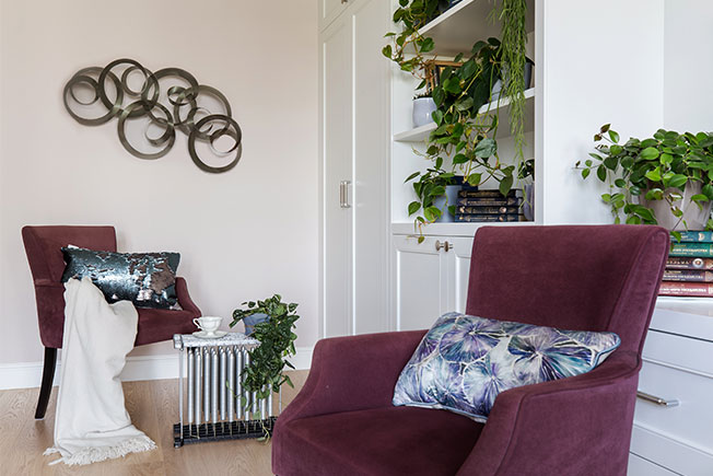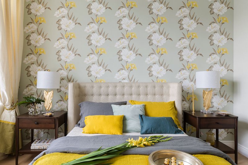 «Стены выкрашены в спокойные цвета: на нейтральном фоне яркие предметы мебели смотрятся эффектнее, но не перегружают интерьер. Обои с рисунком в пространстве использованы фрагментарно. Они играют роль скорее дополнительного декора, нежели основы».