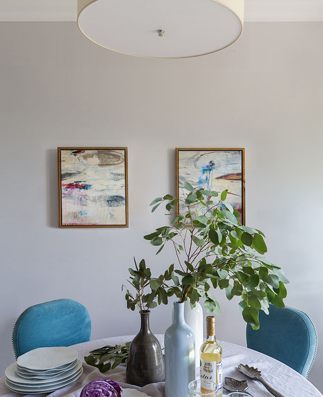 Основной идеей было создать интерьер, где хозяевам было бы радостно встречать гостей, проводить спокойные романтичные вечера. Квартира была выбрана с исходной удачной планировкой — переноса стен и каких-либо других изменений не потребовалось.