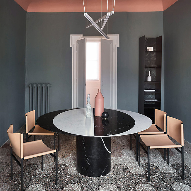 Среди ее фирменных предпочтений геометрическая абстракция, монохром, отсылки к живописи метафизического реализма и сюрреализма. Среди заказчиков Elisa Ossino Studio — DePadova, Boffi, Living Divani, Agape, Salvatori. В 2018 году спроектировала отличную кухню для японского бренда Sanwa.