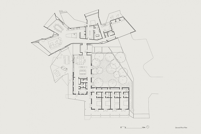Обшитый медью объем на первый взгляд скрывает входы и только через какое-то время понятно как с ним взаимодействовать. Его ядро — старая ферма, викторианский деревенский дом с одной спальней, типичный для этой местности.