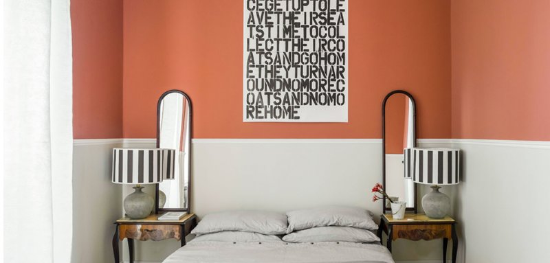 Дизайнер не мог предвидеть, что оттенок, который он выбрал для спальни, станет цветом 2019 года по версии Pantone. Untitled — работа американско-кубинского художника Феликса Гонсалеса Торреса. C ней идеально гармонируют лампы, купленные в Риме. Они помещены на итальянские столики 1950-х.