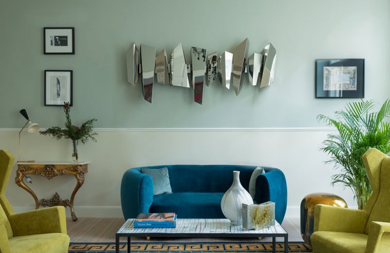 В квартире использована краска Farrow & Ball. «Местные строители не привыкли к хорошим краскам, обычно используют для стен белый цвет. Все что не белое — для них проблема, сразу видны все неровности, тем более если краски матовые. Так что пришлось воевать с мастерами, чтобы добиться желаемого результата».