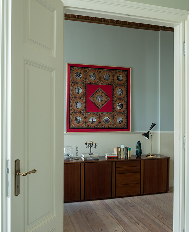 Дизайнер добился гармоничного контраста старой оболочки и современного наполнения. Креденца, 1970. На стене работа AES + F.