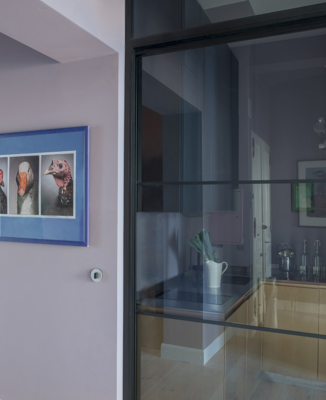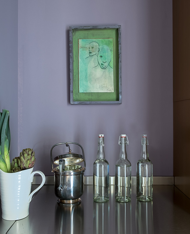 Для стен кухни Павел Воловов выбрал тот же оттенок, что и в прихожей — это визуально объединяет помещения. Арт: Петр Мариуш Урбаняк.