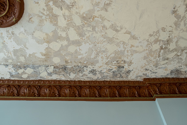 Хозяин обратился к Павлу Воловову — дизайнер с европейским бэкграундом мог оценить наследие и знал, что с ним делать. Доработал планировку, отреставрировал росписи и лепнину. Как вспоминает Павел, пришлось вставать на стремянку и брать в руки шпатель — обучать местных строителей. Они не понимали, зачем нужно тратить на это столько времени, если можно быстро завершить ремонт. Но, когда увидели результат, признали: он того стоил.