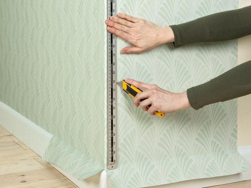 Это позволит увидеть, каким образом материал будет выглядеть на стене, и определить, какую составную часть и куда приклеивать. Если размеры покрытия превышают размеры стены, необходимо определить, какую часть необходимо обрезать, чтобы подогнать размеры.