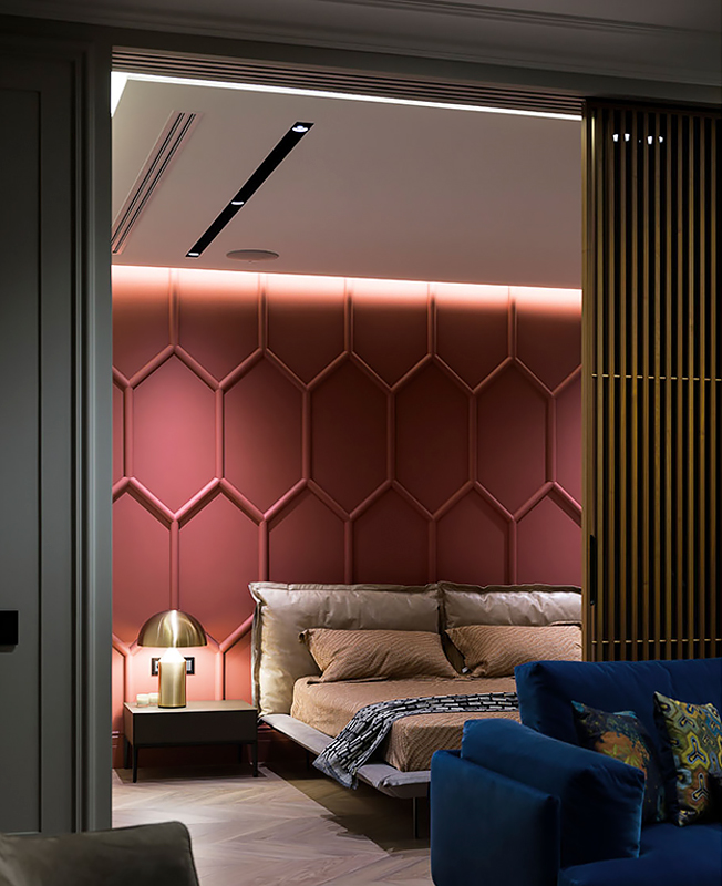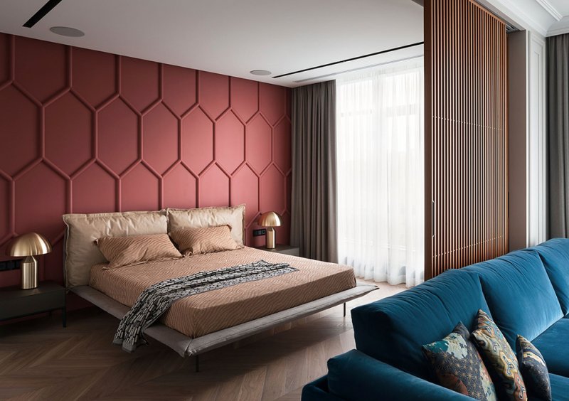 Архитекторы Андрей Медведь и Игорь Фоменко, бюро OM-Architecture, оформили интерьер квартиры в Киеве. Яркой, характерной деталью всего проекта стала стена в зоне спальни.