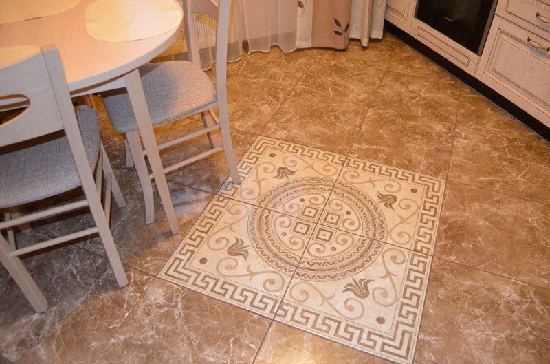 При выборе плитки для пола на кухню необходимо помнить, что здесь пол подвергается очень сильному механическому воздействию, вполне возможны падения металлических и других тяжелых предметов. Грязь менее видна на рисунчатых и темных поверхностях, однако на них очень ярко бросаются в глаза сколы, царапины. Отчего пол становится тусклым, неровным и раздражает глаз. Рельефное покрытие — осложнит процесс мытья полов. Ученые к тому же выяснили, что плитка на полу кухни достаточно вредна для женщин, проводящих достаточно длительный период за приготовлением пищи, так как при этом происходит сильное давление на позвоночник, суставы и мышцы ног. Однако в данном случае также есть выход: покрывать те участки, где вы чаще всего пребываете на кухне половичками из сизаля или жгута, а также возможен вариант комбинации керамической плитки с другим эластичным напольным покрытием.