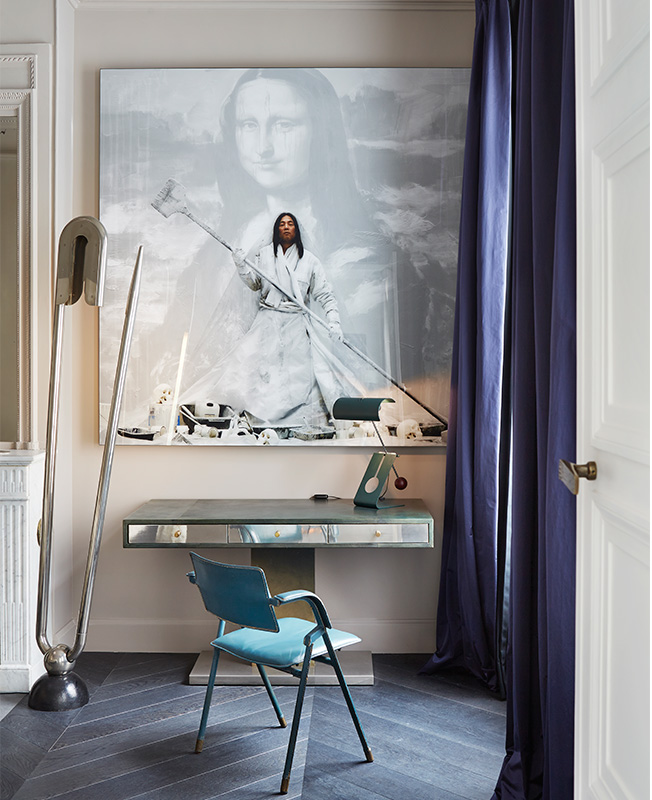 Сара Лавуан. В спальне нашлось место эффектным произведениям искусства. На стене большое полотно китайского художника Ян Пей Мина, которое выставлялось на его выставке в Лувре. Хороши и шторы оттенка узамбарской фиалки.
