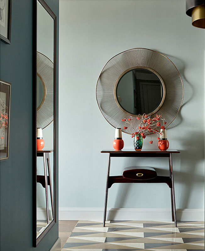 Квартира в Доме на Мосфильмовской по проекту Ирины Марченковой и Марии Земляных. В интерьере соединили авторские вещи, винтаж и предметы высокого дизайна. Холл. Над консолью Картина В. Мартыненко.