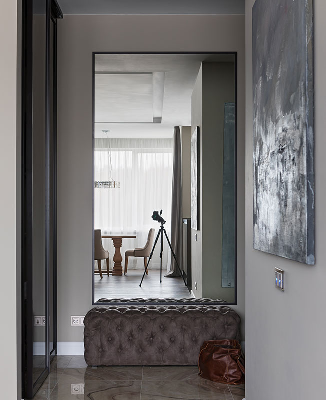 Главной задачей было разделить квартиру на общую и приватную зону, при этом интимное пространство не должно было просматриваться из прихожей.