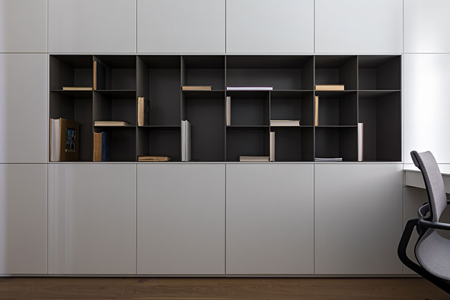 После возведения перегородок были образованы объединенная кухня-гостиная-столовая, кабинет, гостевая комната (впоследствии должна стать детской), главная спальня с ванной и небольшой гардеробной, второй санузел, прихожая, просторная гардеробная. Дизайнеры нашли место и для постирочной, которая спряталась за фасадом кухни.