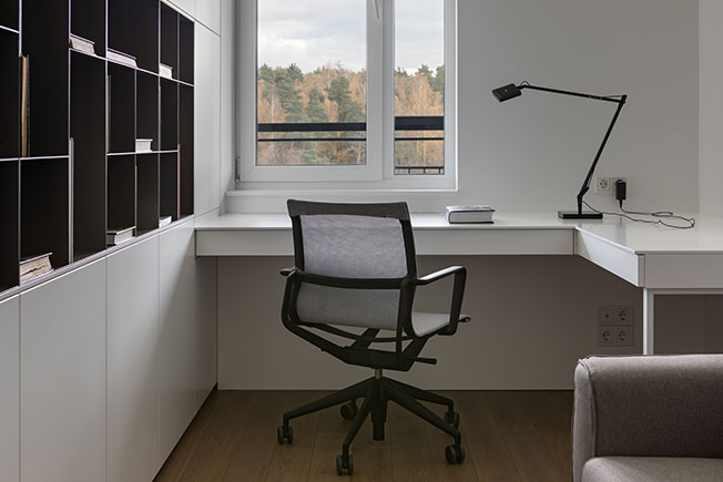 Квартира 150 кв. метров расположена в живописном месте Минска — из окон открывается вид на лес и реку. Заказчики, молодая пара, пригласили белорусскую студию VAE создать интерьер в новом доме ЖК «Аквамарин». Автором проекта выступил Евгений Варкович, а соавторами — Лана Лето и Савко Виталий.