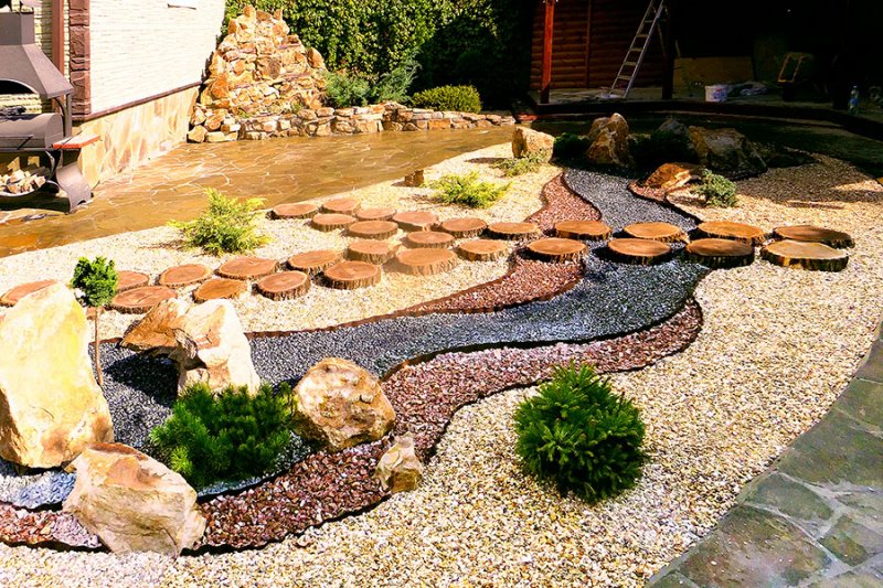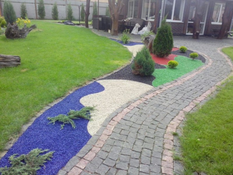 Так же в ландшафтном дизайне и при благоустройстве придомовой территории широко применяется декоративный щебень, представляющий собой каменную крошку, которая прекрасно подходит для декора сада и тропинок.