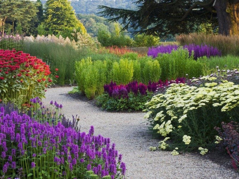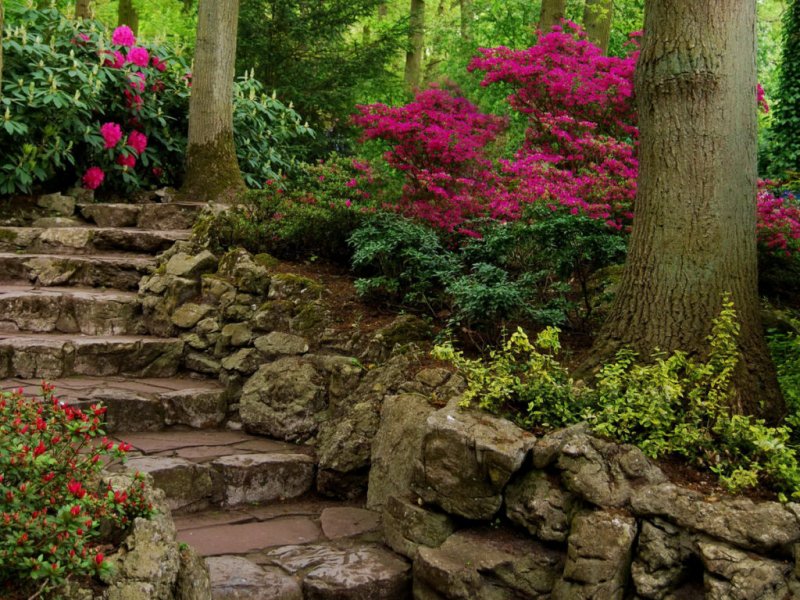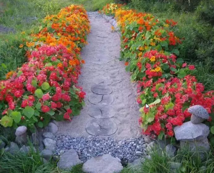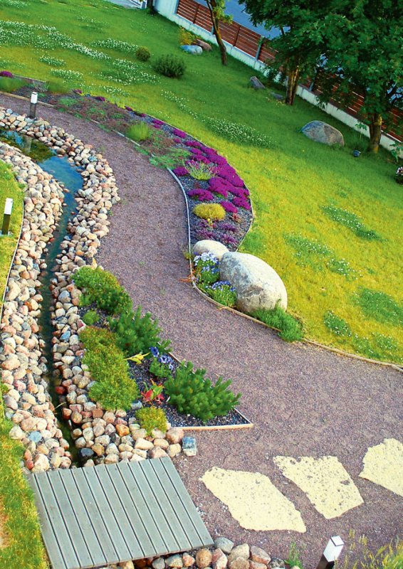 Переход среди растений на скидки не только позволяет им восхищаться своей красотой, но и облегчает их уход. Вы не должны быть осторожны, чтобы не растоптать листья и цветы. Пересечение через скидку осуществляется так же, как через газон. Фото дорожек в саду