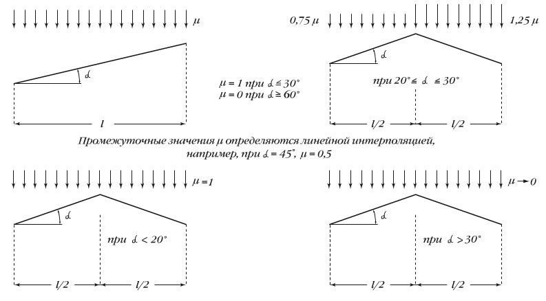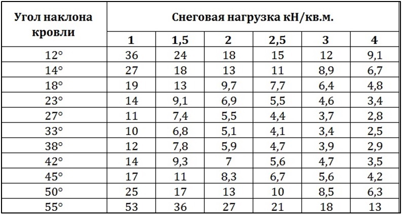 При строительстве можно использовать расчет снеговой нагрузки на кровлю представленный в таблице.