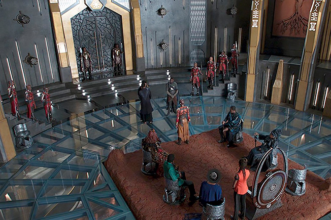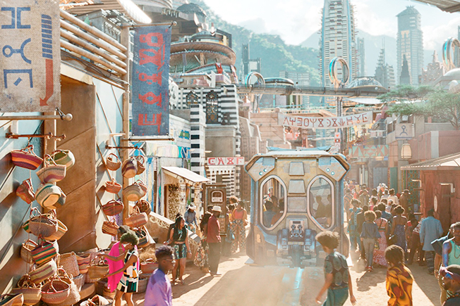 Первая экранизация комиксов, заявленная в категории «Лучший фильм», «Черная Пантера» режиссера Райана Куглера впечатляет эстетикой афрофутуризма: одним из главных «героев» картины стала вымышленная страна Ваканда — технологически продвинутая и отсылающая к африканской культуре. Художник-постановщик Ханна Бичлер признается, что образ локаций был вдохновлен работами архитектора Захи Хадид.