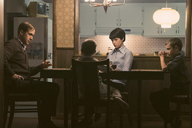 Байопик Нила Армстронга, первого человека, ступившего на Луну, ставит перед художником задачу не впечатлить зрителя яркой сценографией, а проиллюстрировать исторические реалии почти документально, но притом деликатно. Режиссер Дэмьен Шазелл и художник-постановщик Нэйтан Краули противопоставляют рутинные будни в пригороде Хьюстона 1960-х годов невероятному космическому полету, повлиявшему на историю человечества.
