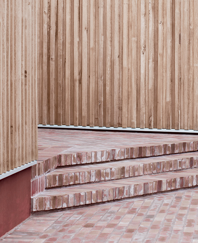 Из-за угрозы наводнений было необходимо, чтобы здание было приподнято. Вместо обычных для местных домов свай архитекторы также использовали старые кирпичи, чтобы поставить постройку на платформу. По их мнению, это делает дом безопаснее, а также придает ощущение устойчивости, надежности. И демонстрирует, как новая структура может «вырасти» на базе чего-то старого.
