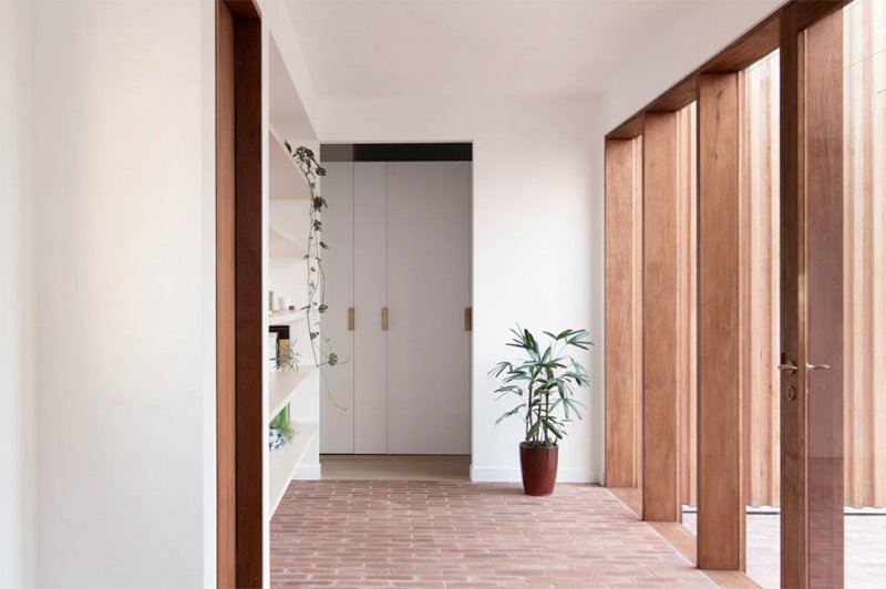 Сиднейская архитектурная студия Trias спроектировала дом для пары из Ньюкасла, Австралия, которая решила перебраться в жилье поменьше. Проект получил название Three Piece House, поскольку состоит из трех частей: двух основных павильонов, соединенных переходом, и построенной на небольшом расстоянии студии. Расположение объектов сформировало два двора — один более открытый, с видом на улицу, второй уединенный. Дизайнерские решения определялись принципом «меньше да лучше», поскольку заказчики просили сделать упор на скромность и устойчивость. Например, одним из основных материалов стал вторично использованный кирпич, из которого было построено бунгало 1940-х годов, не представлвшее архитектурной ценности. Из-за угрозы наводнений было необходимо, чтобы здание было приподнято. Вместо обычных для местных домов свай архитекторы также использовали старые кирпичи, чтобы поставить постройку на платформу. По их мнению, это делает дом безопаснее, а также придает ощущение устойчивости, надежности. И демонстрирует, как новая структура может «вырасти» на базе чего-то старого. Кирпичом выложили и дорожки, которые ведут в дом, чуть «заходя» внутрь в зоне холла, связывая внутреннее и наружное пространства. Его же использовали для оформления кухонного острова, а похожего оттенка плитку — для облицовки тумбы под раковину в ванной комнате. Основные павильоны были спроектированы каждый со своей целью. Один предназначен для общения, принятия пищи и досуга, другой — для сна. Комнаты «скроены» скромно и пропорционально. Чтобы обеспечить комфорт жильцам, дом отодвинули от границ участка, хотя его размеры позволяли выбрать большую площадь помещений. Внутри — лаконичные и светлые пространства с высокими потолками и большими окнами, которые обеспечивают обилие дневного света. Белые стены и светлое дерево служат нейтральным фоном для деталей более сложных природных оттенков. Несмотря на все усилия по созданию неприхотливого интерьера, Three Piece House имеет эффектную ванную комнату с широкой душевой зоной с выложенным плиткой сиденьем и акцентами из латуни. Вокруг дома выстроена низкая стена с изогнутыми краями, терракотовый цвет которой перекликается с оттенком переработанного кирпича и проходящих за окном кораблей, перевозящих уголь. Естественный почвенный покров со временем частично закроет стену, что позволяет дому изящно стареть среди окружающего ландшафта.