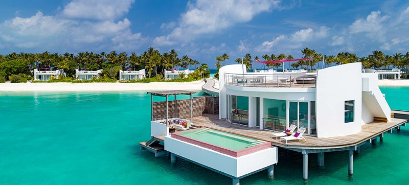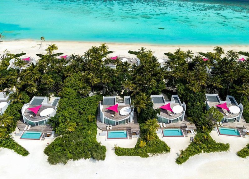 Новый курортный комплекс LUX* North Male Atoll возвышается над бирюзовыми водами Мальдивских островов, словно мираж. Отель расположен на небольшом зеленом острове в атолле Северный Мале, неподалеку от знаменитых мальдивских дайв-сайтов. Остров окружен красивой лагуной и домашним рифом. 67 современных двухэтажных вилл площадью от 100 до 400 кв. метров спроектированы сингапурской студией Miaja Design Group в духе ответа на вопрос: «Если бы Джеймс Бонд нашел роскошное убежище после всех приключений, как бы это выглядело?» Суперяхты Riva пришвартованы рядом. Тема дайвинга и плавания развивается в виде палуб из тикового дерева, украшенных канатом кресел, картин из кораллов, ковров с синим градиентом. В облицованной бетоном ванной комнате чаша ванной выглядит как полузатопленная амфора. К услугам гостей — надводный спа-центр со стеклянной панелью в полу. Из нескольких отличных ресторанов, особо выделяется INTI — кулинарная сенсация с перуанско-японской кухней фьюжн.