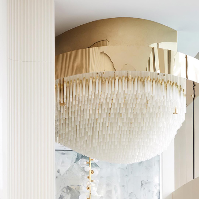 Мельбурнская студия Mim Design спроектировала ресторан Nineteen at The Star в отеле Darling. Расположенный на самом верхнем уровне гостиницы, ресторан на 150 мест обладает панорамным видом на золотое побережье курорта Голд-Кост. Барная зона рассчитана на 500 гостей. Цветовые палитры в ресторане отражают окружающий пейзаж. Мягко позолоченная латунь покрывает лифты и бары, отражая ночные огни на горизонте. Изогнутые нестандартной формы диваны и стулья обиты бархатом оттенков бирюзы и темной морской синевы. Насыщенная зелень мрамора напоминает о местных залесенных горах Тамборин и Спрингбрук. Двойные окна и изогнутая лестница расширяют пространство столовой зоны. Здесь установлена необычная винная комната, вмещающая экспозицию до 3500 бутылок. Для VIP-персон есть частный бар с коньячной стеной, черной мраморной стойкой и царственным ковром из красного бархата. Потолок украшает серия из каскадных люстр с уникальной конструкцией из латунных, трубчатых и сферических лампочек.