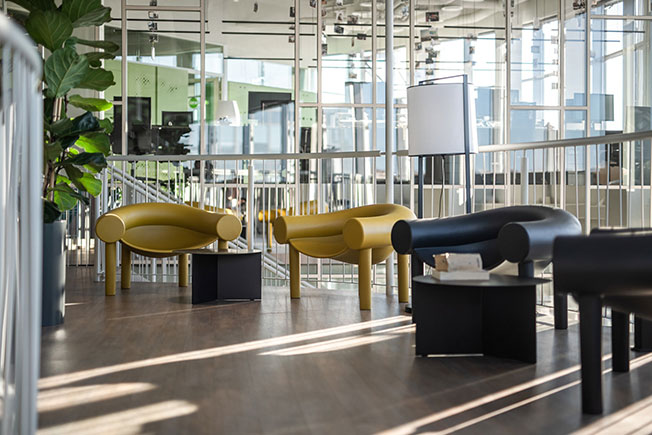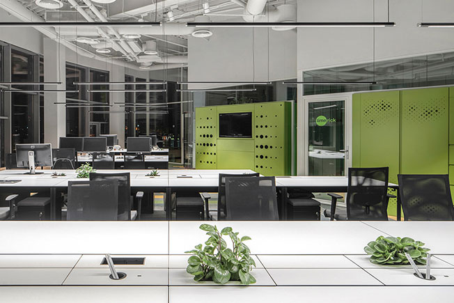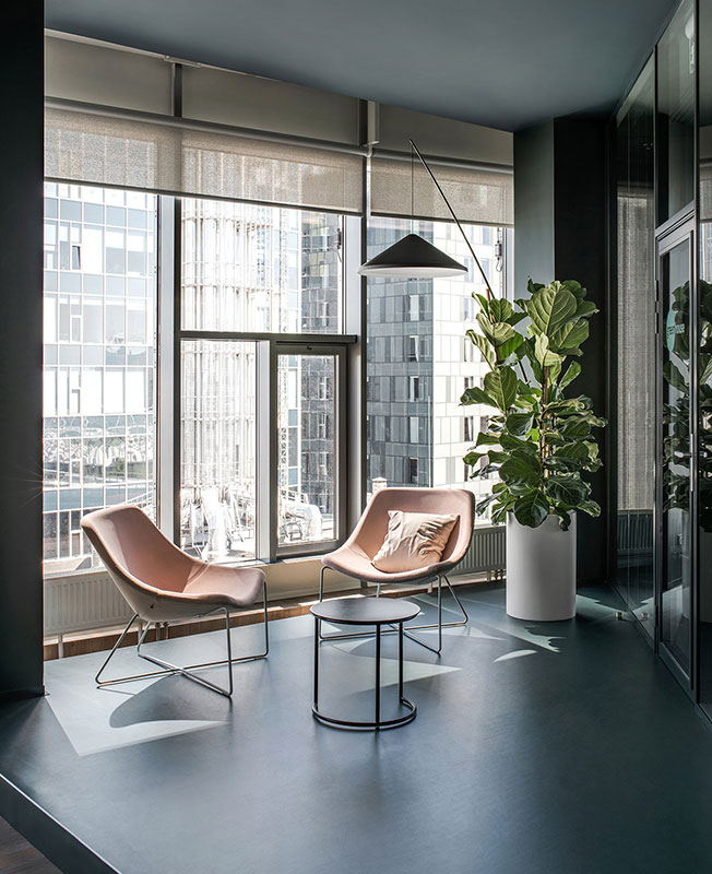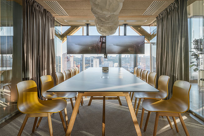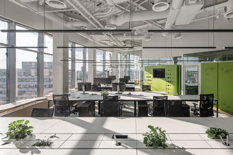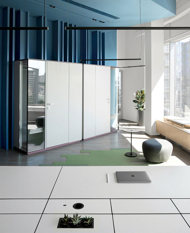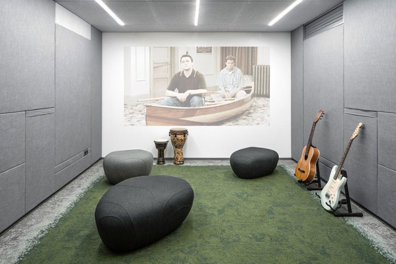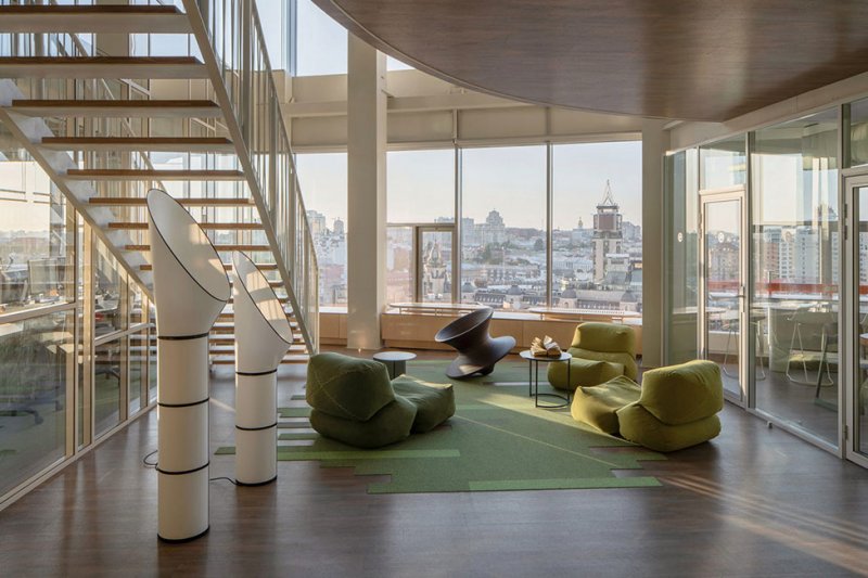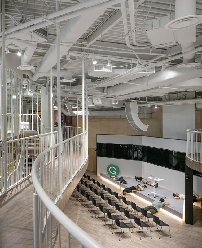 Компания Grammarly хотела получить многофункциональное пространство с универсальными площадками, которые подошли бы для разных стилей работы. Офис расположен на двух верхних уровнях 14-этажного здания. На общей площади 1750 кв. метров архитекторы, помимо обязательных рабочих мест, оборудовали боксы для сна, игровые и даже специальную звукоизолированную комнату.