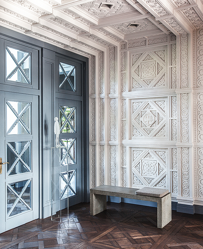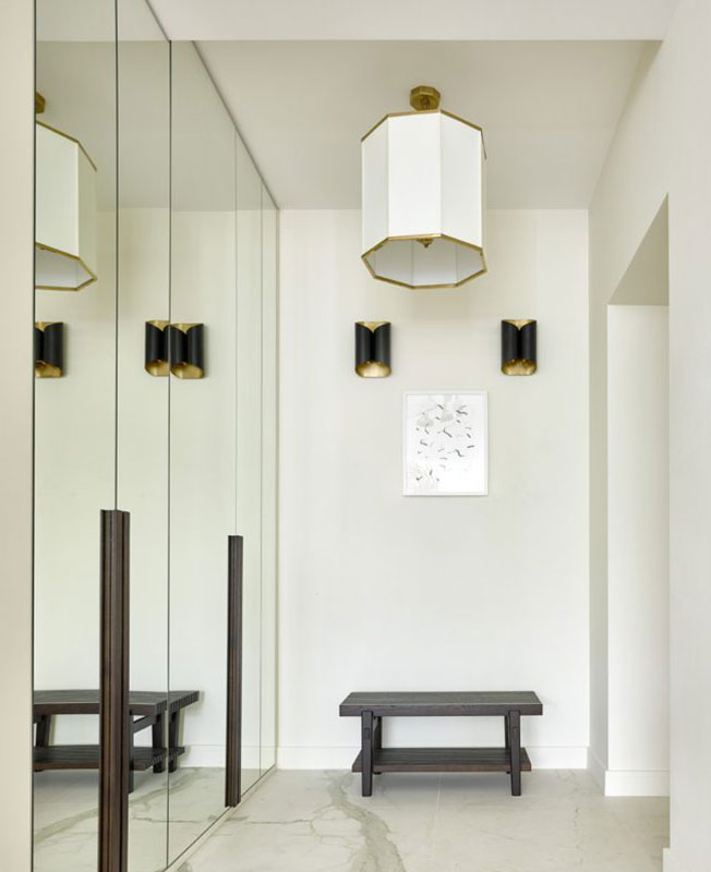 Дизайнеры Ариана Ахмад и Татьяна Карякина спроектировали квартиру в доме, расположенном в тихих московских переулках, в Хамовниках. Шкаф и скамья в прихожей изготовлены на заказ по эскизам дизайнеров.