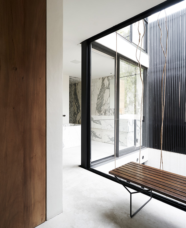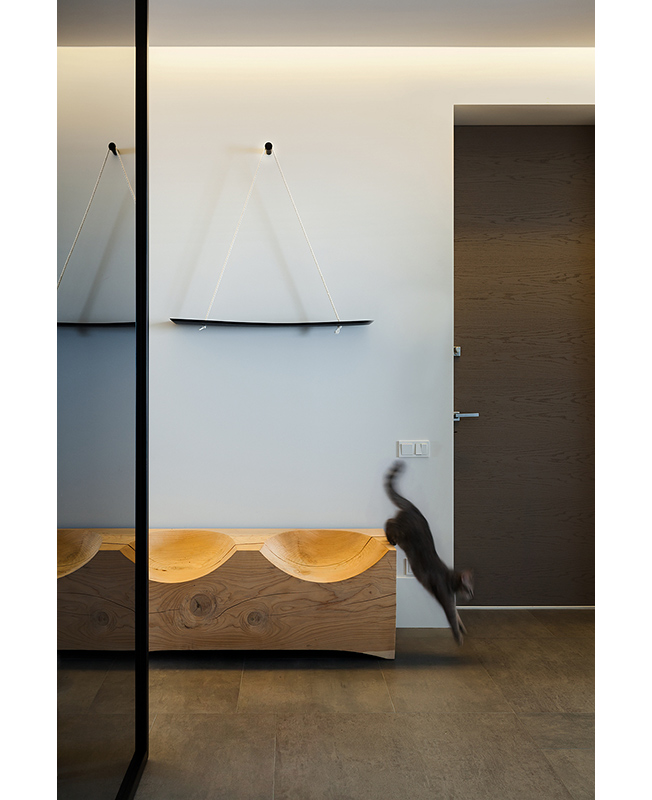 Архитекторы Альбина Шорина и Георгий Козлов (бюро Domestic Studio) спроектировали в центре Москвы лаконичный, но очень теплый интерьер. Скамья Studioilse.