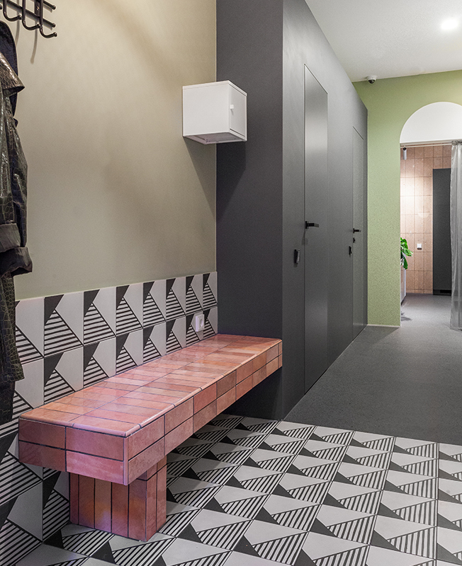 Екатерина Сванидзе и Екатерина Любарская, архитектурная студия Dvekati, оформили интерьер в доме 1970-х годов. Скамья в прихожей изготовлена на заказ и облицована плиткой Equipe.