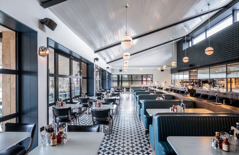 Деревенский мотель, ресторан и кафе Mollie's Motel and Diner в Оксфордшире переродился усилиями Soho House Group, сети клубных отелей по всему миру, которая позиционирует себя как «место для людей творческих профессий». В нее входят гостиницы и частные заведения в самых интересных городских местах и зданиях. Как придорожный мотель стал стильным пит-стопом для водителей Mini Cooper? 79 номеров были оформлены спецалистами Soho House Design с приоритетом комфорта и новых удобств. Повсюду плюшевые, бархатные мягкие кресла и шикарное минималистское освещение, простыни из египетского хлопка и душевые лейки с эффектом ливневого дождя. Здесь есть стандартные двухместные и экономичные двухъярусные номера, с бледно-зелеными стенами, обшитые панелями. Комнату можно бронировать через приложение, используя после телефон в качестве ключа. Полки с книгами по дизайну, предметами искусства и растениями, также как скандинавские стулья помогают почувствовать себя в тысячи миль от бензозаправки. Точкой притяжения остается станция BP, универмаг и две закусочные в американском духе — с домашними коктейлями и предсказуемой, но качественной едой.