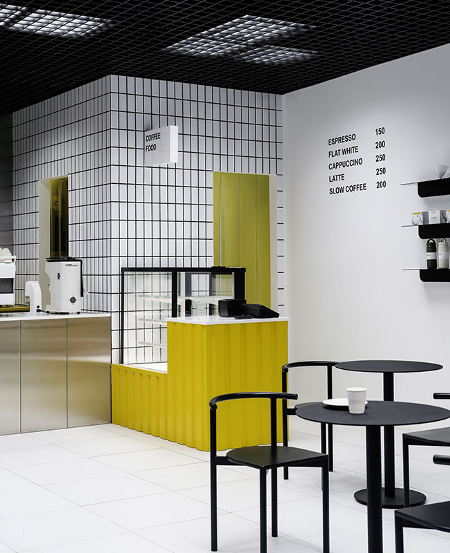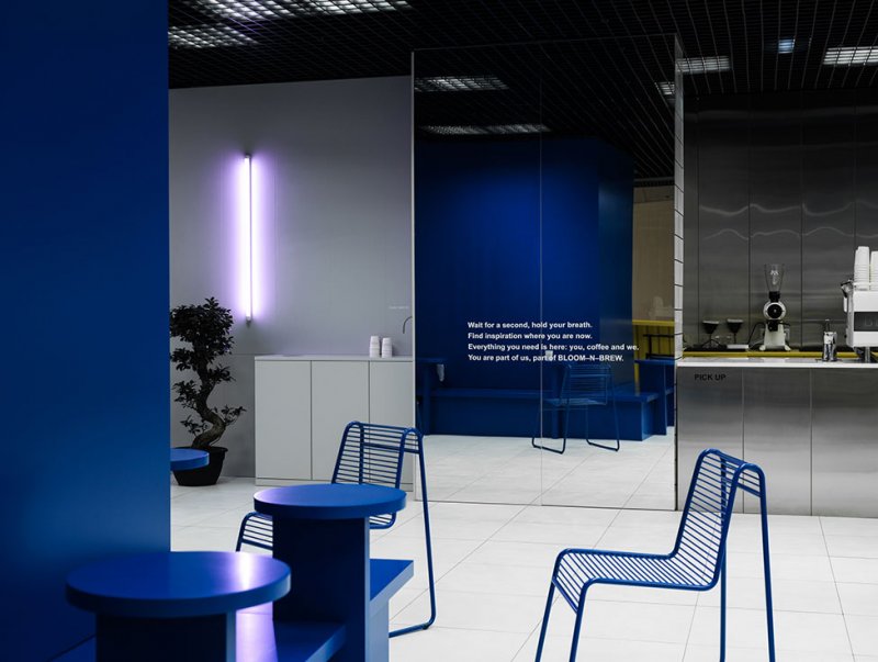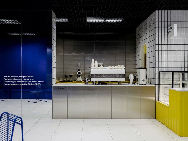 Студия Asketik оформила уже второй интерьер для кофейни Bloom-n-Brew. Футуристичную концепцию заведения продиктовала сама локация заведения — небоскреб в Москва-Сити. «Вдохновением послужили улицы Москвы. Мы переосмыслили облицованные прямоугольной плиткой фасады домов, профнастил на балконах и вложили эти элементы в само понятие Moscow city», — рассказывает о проекте основатель студии Максим Максимов. nonehttps://www.instagram.com/asketik/https://www.facebook.com/profile.php?id=100009306852182http://asketik.com/ Акцентами в пространстве стали контрастные цвета и графические элементы. На закругленной белой стене можно прочесть философию бренда Bloom-n-Brew, повторенную в зеркальном полотне возле кассовой зоны. Поддерживают ультрасовременную атмосферу неоновые светильники, поистине аскетичные предметы мебели, поверхности из нержавеющей стали и яркая цветовая палитра. • Москва, Пресненская набережная, 12, башня «Федерация».