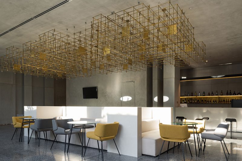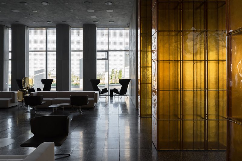 Новый аэропорт Ростова-на-Дону Платов за несколько лет существования успел прославиться, во-первых, благодаря архитектурной концепции с впечатляющей волнообразной крышей от британского бюро Twelve Architects, а во-вторых — эффектными интерьерами. Студия Nefa Architects спроектировала в аэропорту бизнес-терминал общей площадью более 3500 кв. метров. Заказчиком в рамках программы комплексного развития крупных авиацентров России выступил холдинг «Аэропорты Регионов». В ростовской степи в разные времена проживало множество народностей — хазары и греки, скифы и сарматы. Как дань уважения богатой истории и культурным особенностям региона, наружный контур здания архитекторы решили сделать в виде колоннады, но не в классическом, а современном прочтении. Чтобы конструкция не выглядела слишком громоздкой и серьезной, ее ритм сделали свободным, нерегулярным. За наружной колоннадой находится стеклянный параллелограмм. В центре объема расположен внутренний двор с лестницей, ведущей на эксплуатируемую кровлю. Здесь расположена открытая площадка с садом, шезлонгами, беседками и баром. Таким образом архитекторы связали воедино интерьер и экстерьер — одно пространство плавно перетекает в другое. Здание проектировалось с нуля, поэтому архитекторам удалось максимально правильно и логично зонировать помещения. Основное предназначение зала — создание комфортной обстановки для вылетающих пассажиров, поэтому зонам для отдыха уделено особое внимание. Функционально пространство включает зону вылета со стойкой ресепшен, залами ожидания, кафе, отдельными комнатами для переговоров и отдыха, а также помещениями различных служб (пограничной и таможенной). Из зоны прилета с атриумом можно подняться с помощью лифта в сад на кровле. Отдельная зона официальных лиц и делегаций оборудована большим залом заседаний, здесь также предусмотрен кабинет губернатора. Во время строительства на месте будущего аэропорта был обнаружен курган сарматов, в котором обнаружили клад с золотыми украшениями. Именно эта находка продиктовала концепцию интерьера. Во внутреннем пространстве акцентным цветом стал золотой. Латунные светильники, а также стеклянные колонны во входном холле — яркий запоминающийся акцент был создан совместно с партнерами Nickel Collective. Блоки мурманского венецианского стекла смонтированы на натянутых тросах и оборудованы интегрированной подсветкой. Помимо декоративной роли, колонны также функционально отделяют входную зону от залов ожидания. За счет открытого внутреннего двора в помещение проникает солнечный свет, который при попадании на мурманское стекло создает причудливые карамельно-золотые блики на полу и стенах. nonehttps://www.instagram.com/nefa_architects/https://www.facebook.com/NEFAArchitects/http://nefa-architects.com/