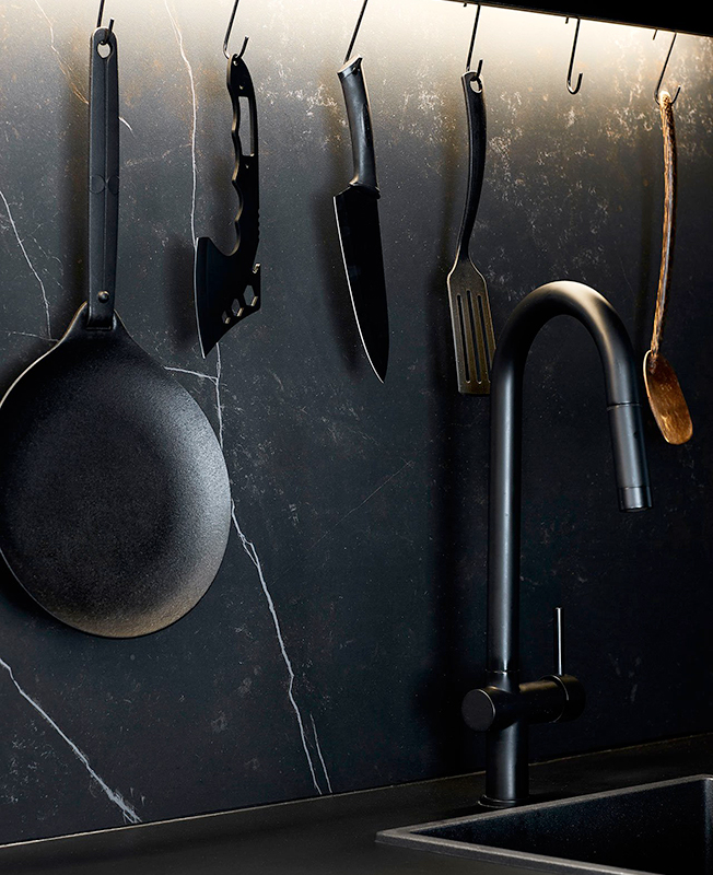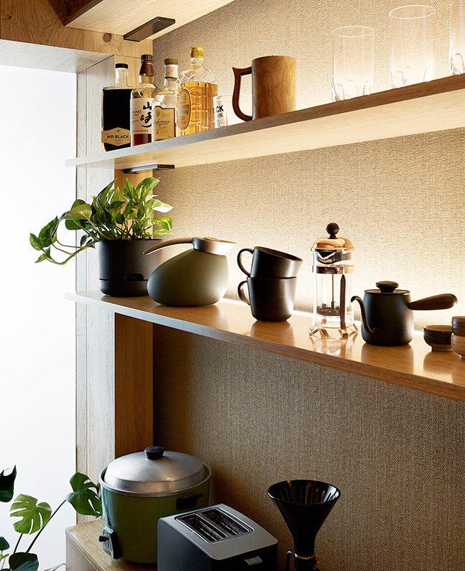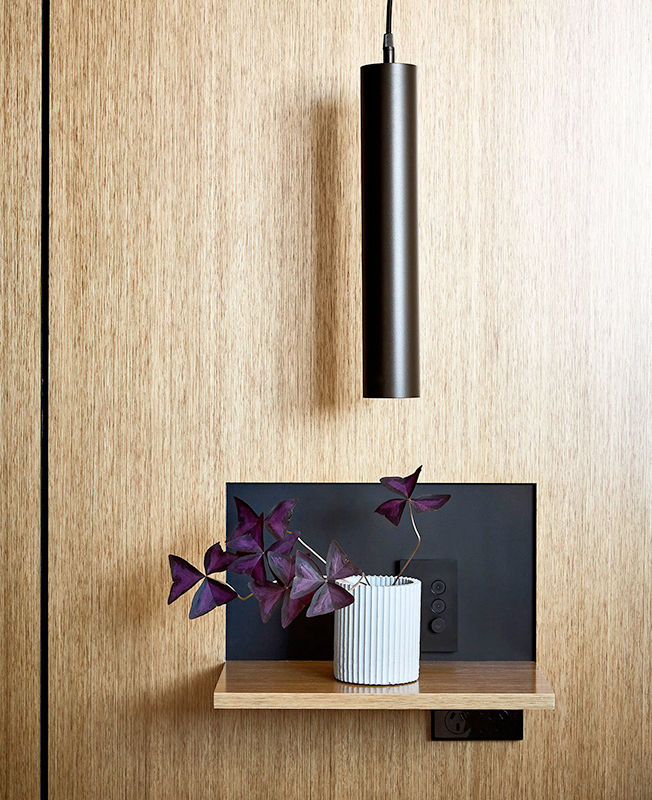 Для этого интерьера команда Tsai Design разработала две модели, способные решать сразу несколько задач: выдвижную панель с обеденным столом и складную рабочую станцию, которые легко исчезают при необходимости.