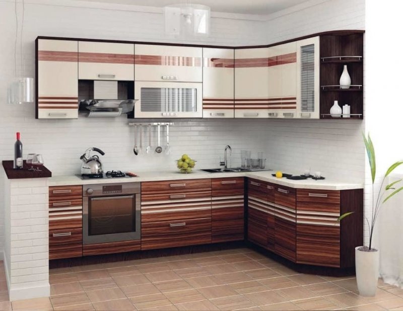 Имеет смысл учесть, что кухни под заказ с пестрыми «фартуками», исполненными в формате 3D, впечатляют, придают кухне оригинальность и яркость, но стоит иметь в виду, что в таком случае вся кухонная утварь должна быть убрана в шкафы. Иначе неизбежно возникает ощущение беспорядка.