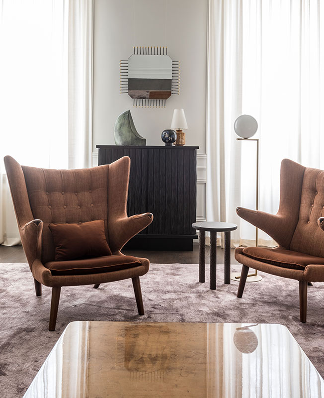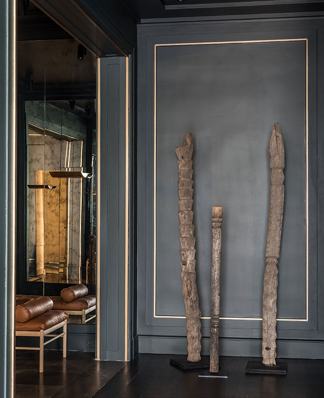 В интерьер привезли предметы разных периодов, от 1930-х до1970-х: ар-деко Жан-Мишеля Франка, скандинавскую классику, африканский антиквариат, немного современного дизайна. Все вместе они создают уникальную среду, которая отражает наши бесконечные, вдохновлявшие меня дискуссии с заказчиками.