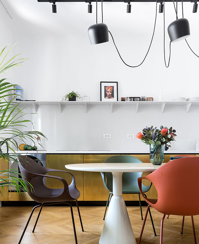 Проект украшают выбранные Bogdan Ciocodeica хиты дизайна XX и XXI века — мебель и свет от Vitra, Magis, Gubi, Normann Copenhagen, Hans Wegner, Flos, Kristalia, Muuto, Sancal.