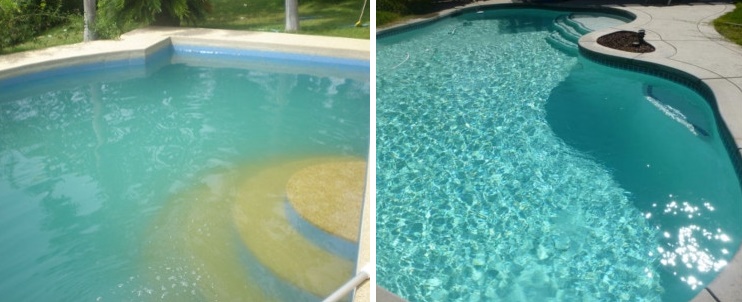 Первое решение, которое приходит при виде такого бассейна – замена воды и ополаскивание стенок. Но этого недостаточно: бактерии остаются на стенках, заселяются и быстро размножаются уже в свежей воде. Также их повторному распространению способствуют насос и фильтры, которые расселяют водоросли снова и снова. Единственный способ избавиться от проблемы раз и навсегда – уничтожить их альгицидными препаратами один раз, а затем регулярно использовать эти вещества в дальнейшем, уже в меньшей, профилактической дозе.