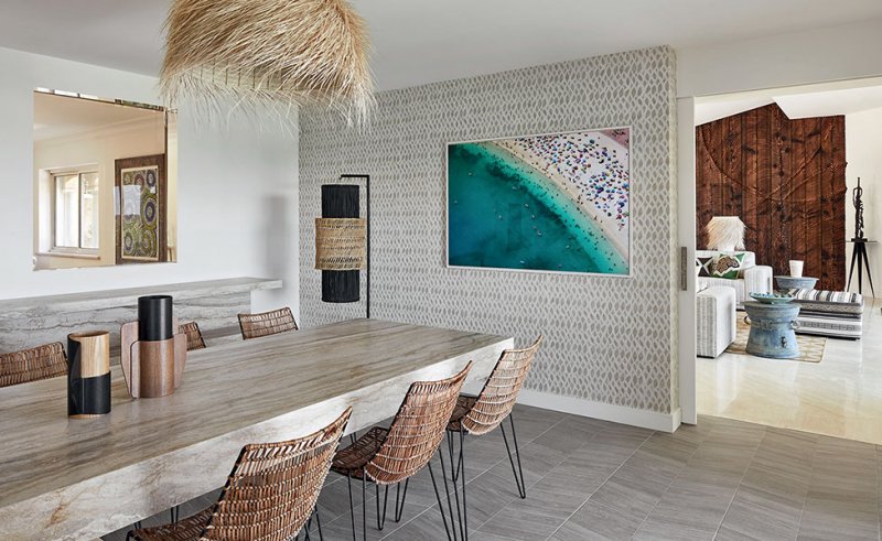 Столовая. Стол и предметы декора, диз. Стефани Кута. Обои Oceania Nema, Elitis. Винтажные стулья с парижского блошиного рынка Serpette. Торшер и люстра Rock the Kasbah. Фотография Массимо Витали.